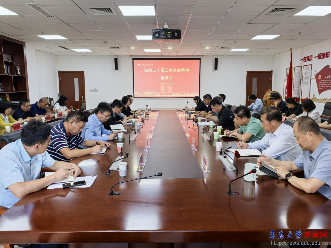新闻网讯 9月24日下午,青岛医学院党委、离退休党委在浩园医学教育综合楼215会议室召开党委理论学习中心组(扩大)会议,集体学习党的二十届三中全会精神,校党委常委、副校长牛海涛作辅导报告。