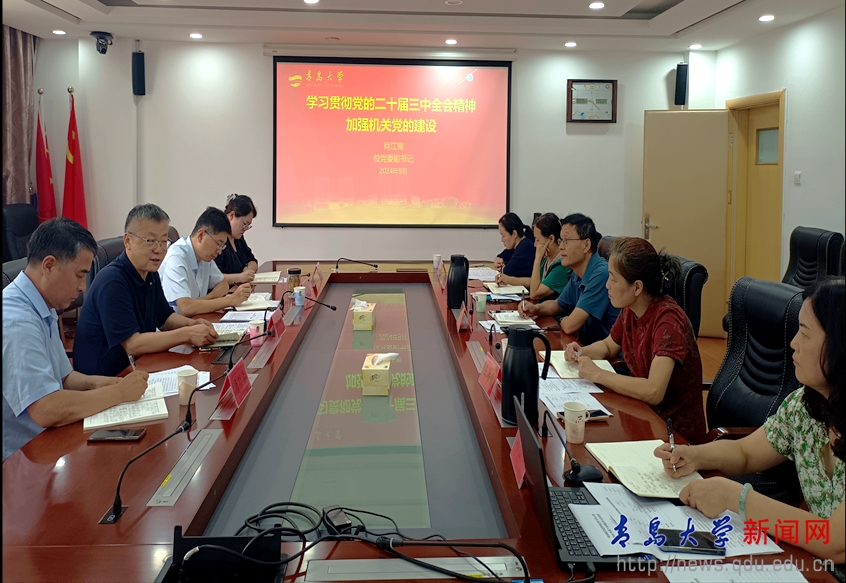 新闻网讯 9月14日上午,校部机关党委在办公楼306会议室召开党的二十届三中全会精神宣讲会,校党委副书记肖江南作宣讲报告,校部机关党委书记吴鹏主持会议,校部机关党委理论学习中心组全体成员参加会议。