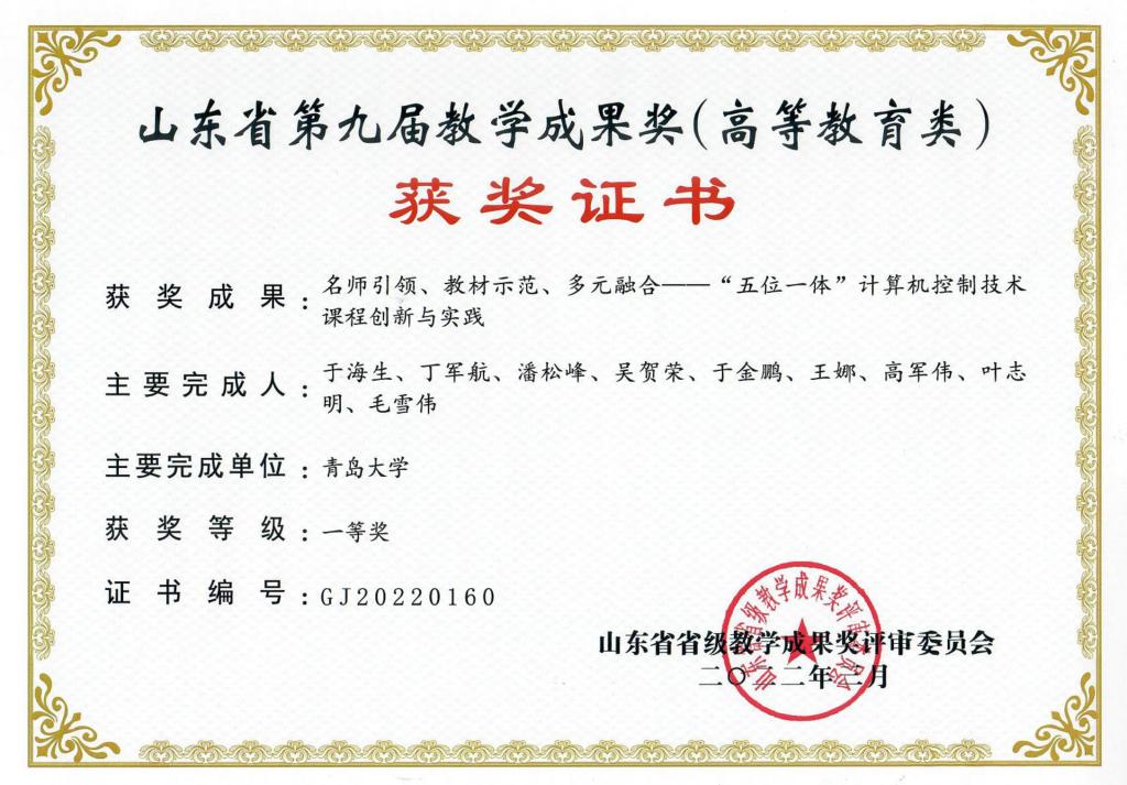 山东省自动化学会教学成果一等奖