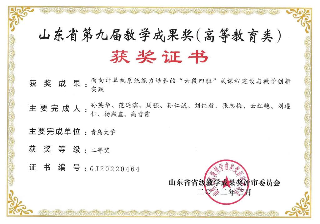 山东省高等教育教学成果奖二等奖