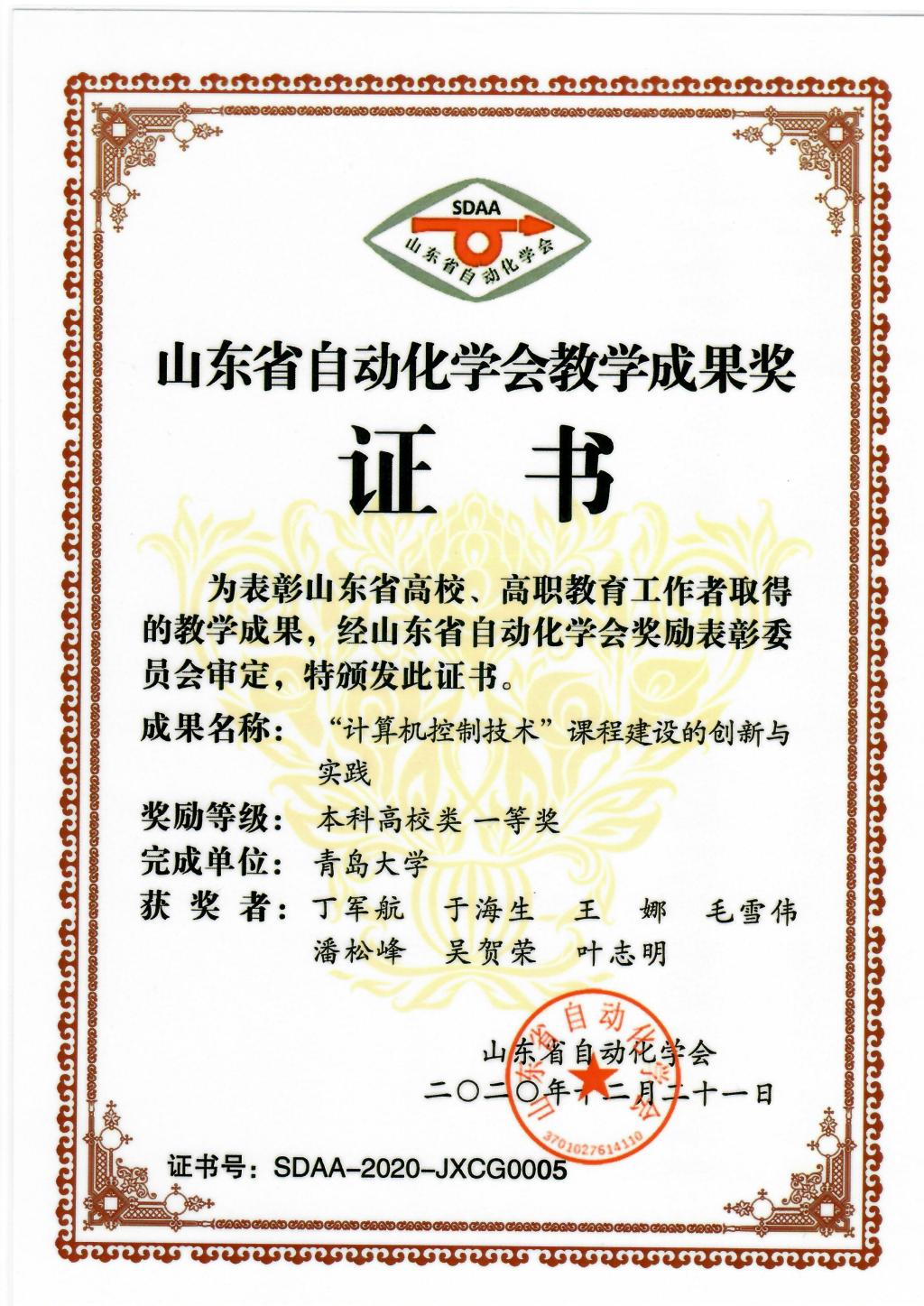 山东省自动化学会教学成果一等奖
