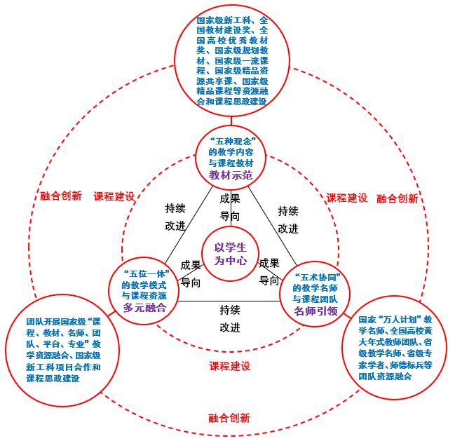 ②搭建了“五位一体”的教学模式与课程资源。通过国家级新工科项目研究与教学资源融合创新,教学模式与课程资源实现了主动-生动-互动-触动-联动、研讨-创作-作业-实验-考评、线上-线下-线上线下混合、教学资源更新-重点难点讲授-实验装置设计、课程目标-教学内容-教学方法-教学平台-教学团队的“五位一体”;建成了国家级一流本科课程、国家级精品资源共享课、国家级精品课程、国家级人才培养模式创新实验区、国家级实验教学示范中心、国家级大学生校外实践教育基地、国家级一流本科专业、国家级特色专业、国家级专业综合改革试点、教育部卓越工程师教育培养计划和省级课程思政示范课程等资源。