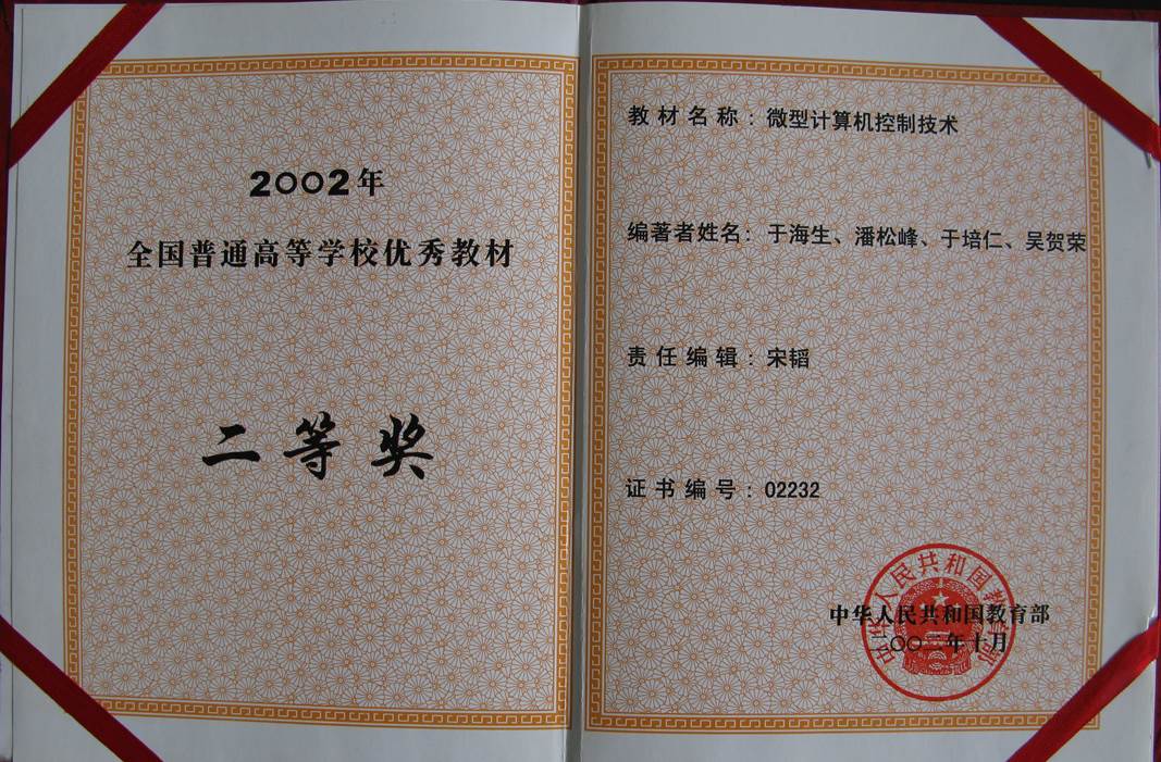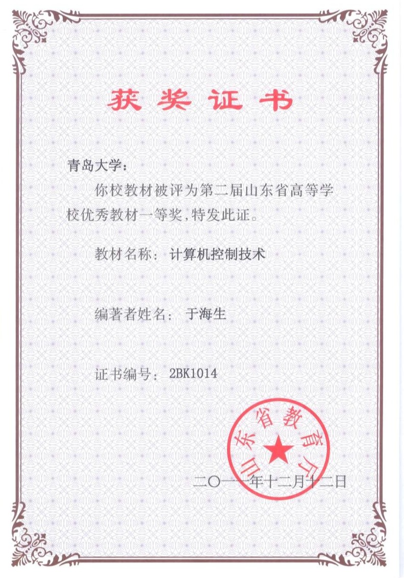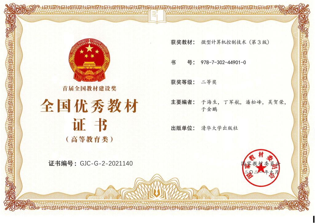 1.于海生等,微型计算机控制技术,首届全国优秀教材二等奖,国家教材委员会,2021